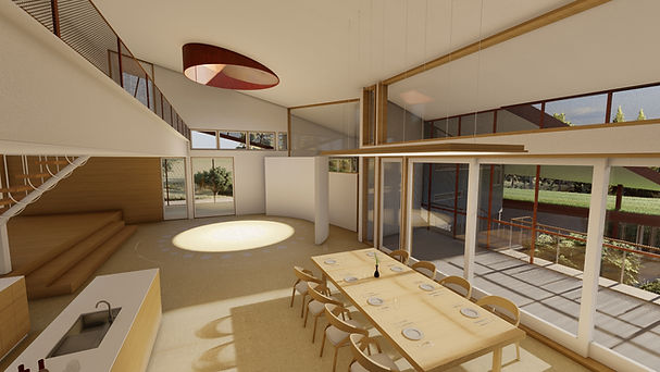 Jan and Billy are inventors/mathematicians living in Silicon Valley and the Tropics. This home will be a place to live, work, and commune with friends. They described in detail how they intended to live in this place on this land 6-8 months of the year with their young adult children. They wanted a respite from their travels where they could re-center, recharge, reflect, and create in their family workshop and studio. Also, to gather with extended family and friends for various communal conversations, jam sessions, gardening, cooking, and ecstatic spiritual dancing, inspired by Dervishes and Shakers.
